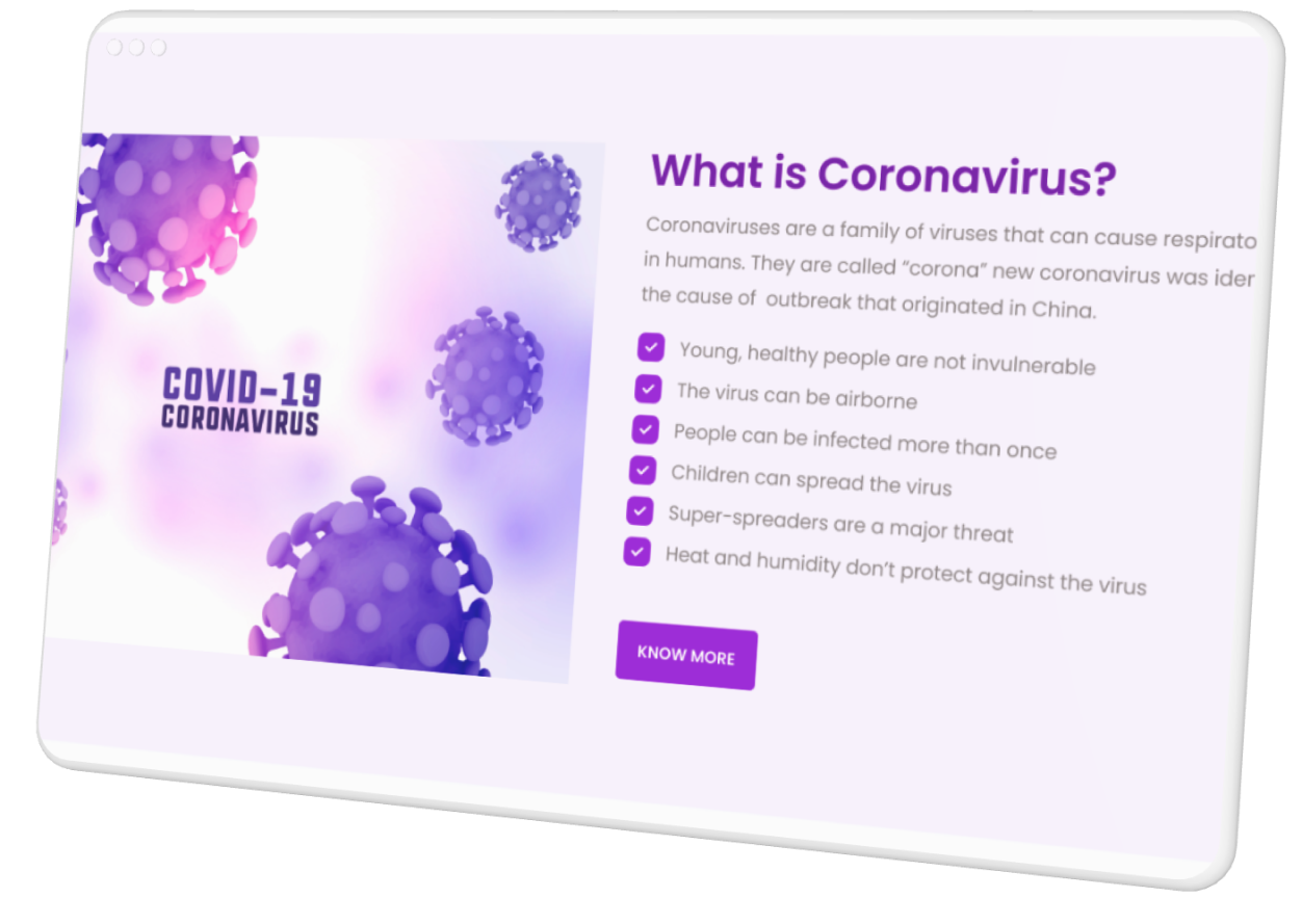 The COVID website project was successful in achieving its objectives by providing a reliable, informative, and engaging platform that served as a valuable resource during a critical global health crisis. It demonstrated the importance of leveraging technology to address challenges and make a positive impact on public health and community well-being.